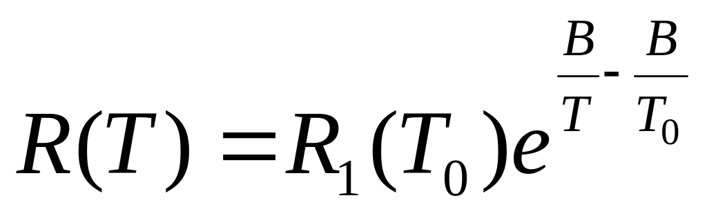 где R1( Т0) – номинальное значение сопротивления при температуре Т0 (обычно T0 = 293 К); T – температура; В – коэффициент, постоянный для данного экземпляра терморезистора; е – основание натурального логарифма.