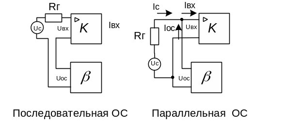 На входе сигнал ОС и входной сигнал алгебраически суммируются. Возможны два принципиально отличных по конечному результату случая: