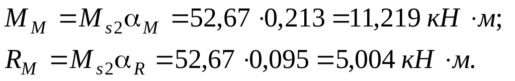 М23 = ММ – RMНв + Мs2= 11,219 – 5,0045,75 + 52,67 = 35,12 кН м;