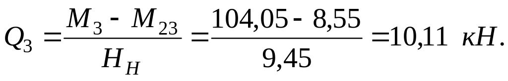 Проверка: Q1 = Q3 = 10,11 кН. Проверка выполняется.
