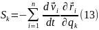 По той же методике (8), по которой вычислялись обобщенные силы Qk, соответствующие активным, задаваемым, силам, определяются и обобщенные силы Sk, соответствующие силам инерции точек системы: