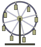 Поступательно движутся педали велосипеда относительно его рамы во время движения, поршни в цилиндрах двигателя внутреннего сгорания относительно цилиндров, кабины колеса обозрения в парках (рис.4) относительно Земли.