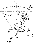 На примере вращающегося волчка можно лучше разобраться в этих углах Эйлера (рис.17). Ось волчка z1 описывает конус вокруг неподвижной оси z. Это вращение определяется углом Ψ (говорят: волчок совершает прецессию). Отклонение оси волчка от вертикали – угол нутации θ.