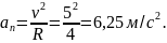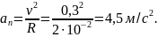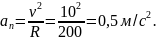 Решение. Зная скорость автомобиля v=36 км/ч =10 м/с, найдем его нормальное ускорение