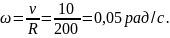 Угловая скорость ω=vR=5∙4=20 рад/с.