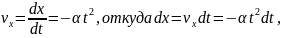 Производя дифференцирование, получим vx=1-0,25t, ax = - 0,25 м/с2.