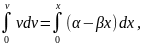 Пример 27. Частица движется в положительном направлении оси x так, что ее ускорение меняется по закону a=α-βx, где α и β - положительные постоянные. Учитывая, что в момент времени t = 0 она покоилась и находилась в начале координат (x0 = 0), найдем зависимость скорости частицы от координаты.