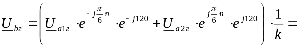При определении трансформированных фазных величин нужно иметь введу, что токи и напряжения при переходе через трансформатор изменяются не только по величине, но и по фазе в зависимости от соединения его обмоток. Исходя из данных n = 11, k = 10,45, где n – группа соединений обмоток, k – коэффициент трансформации