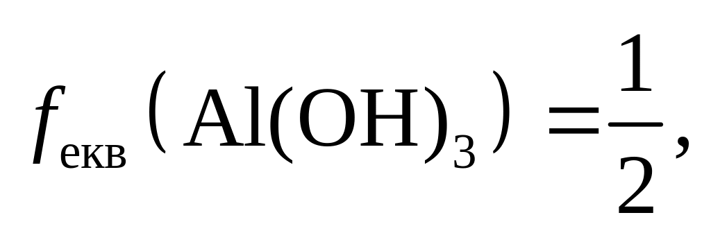 fекв(BaO) і fекв(ZnO) будуть дорівнювати 1/2 у зв’язку з тим, що у першому випадку внаслідок взаємодії BaO утворюються два іони OH–, а у другому ZnO взаємодіє також з двома іонами OH– (хоча і при спіканні). У той же час для реакцій за участю Al2O3: