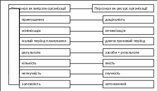 - погляд на працівників як на ресурс організації, як на виконавців окремих функцій |