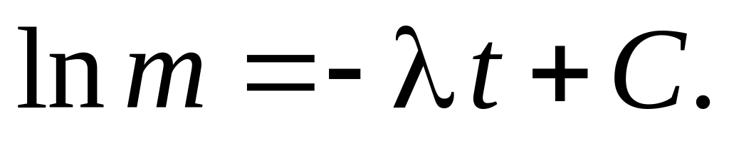 Здесь m – масса вещества, t – текущее время (независимая переменная), – постоянная распада, характеризующая данное вещество. Знак минус означает, что скорость отрицательна – количество вещества уменьшается. Данное уравнение является уравнением с разделяющимися переменными, и оно легко решается. Перепишем уравнение иначе