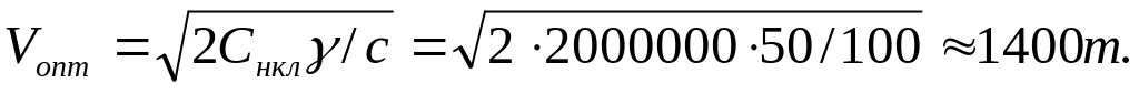 v = 50 т/сут; Снкл = 2 000 000 р., с = 100 р./т в сут; >т = 1500 т.