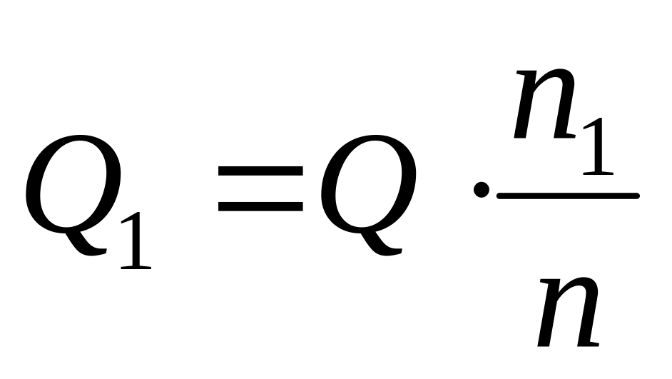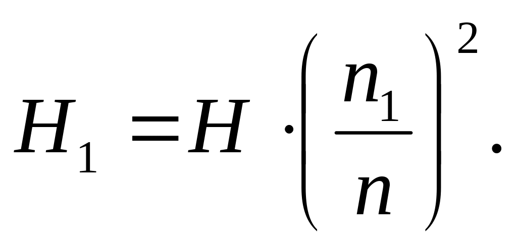 Допускается работа насоса с пониженным числом оборотов. При этом величины Q и Н, соответствующие расчетному числу оборотов п, при пониженном числе оборотов п1 уменьшатся до величины Q1 и Н1 таким образом, что