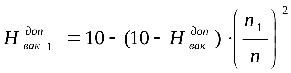 Если насос будет работать при другом числе оборотов n1 в минуту, то новая высота всасывания подсчитывается по выражению