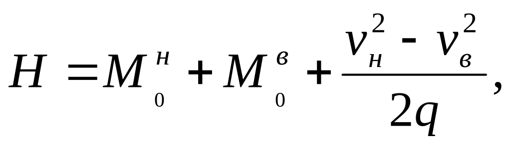 где М0 и V0 – приведенные к оси насоса показания манометра и вакуумметра в метрах столба подаваемой жидкости;