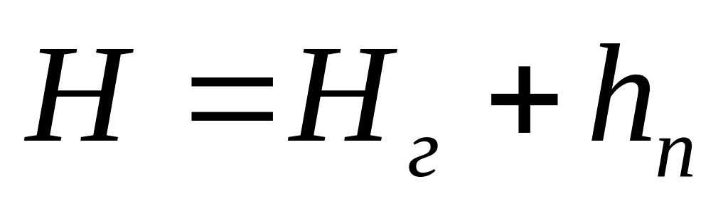 где Нг — геометрический (геодезический) напор — расстояние по вертикали от нижнего до верхнего уровня при условии, что уровни находятся под атмосферным давлением;