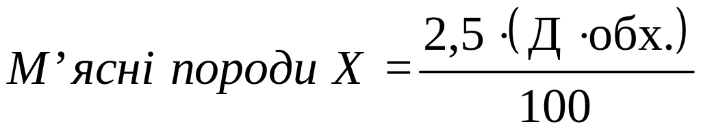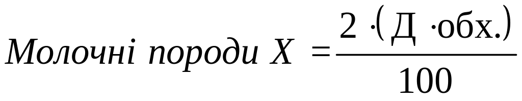 де Д - довжина тулуба від середини холки до кореня хвоста, см; обх. - обхват грудини за лопатками, см.