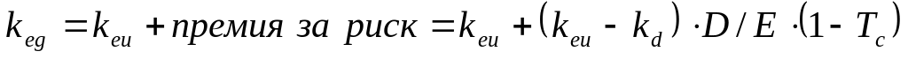 Стоимость СК финансово зависимой компании представляет собой сумму стоимости СК финансово независимой компании и премии за риск, равной произведению разницы в значениях стоимости СК и ЗК на величину финансового левериджа.