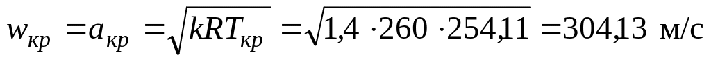 Параметры (температура, скорость, плотность и давление) в критическом сечении: