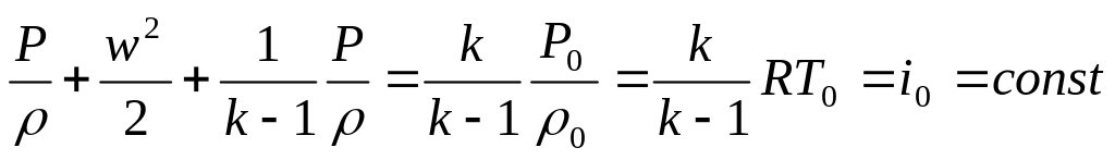 Р0, ρ0, Т0, i0 – параметры торможения, т.е. параметры газа в точке, где скорость его адиабатически обращается в нуль;