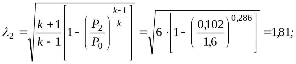 Предварительно определяем параметры заторможенного потока Т0, Р0, 0, критическую скорость звука акр, затем плотность газа 1 и местную скорость звука а1 в сечении 1: