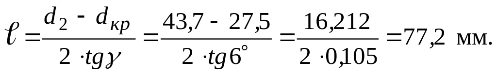 Длина расширяющейся части сопла составляет: