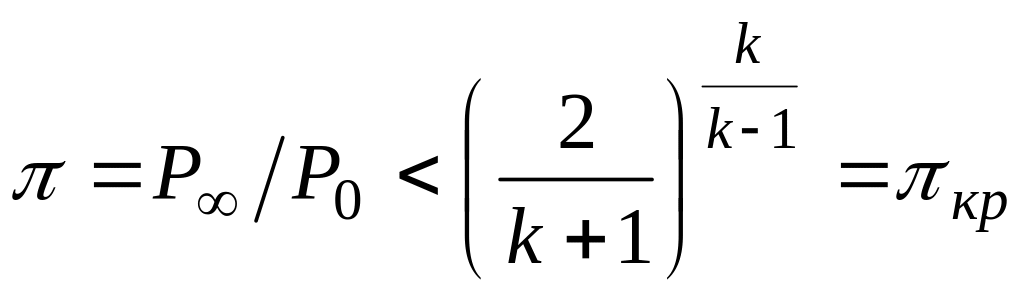 т.е. перепад давлений сверхкритический, что позволяет получать сверхзвуковые скорости истечения из сопла Лаваля. При докритическом перепаде сверхзвуковое истечение невозможно.