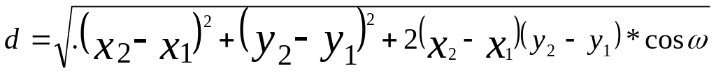 Вычислить расстояние между неподвижной и движущейся точками в косоугольной системе координат по формуле: