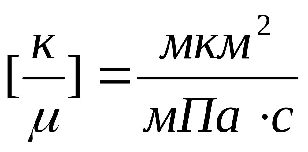[k]=м2 , мкм2, Д, мД. 1Д=1000мД=1,02мкм2=1,0210-12 м2.