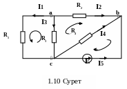 Бес тармақтан және үш түйіннен тұратын электрлік схеманың мысалы 1.10 суретінде келтірілген.