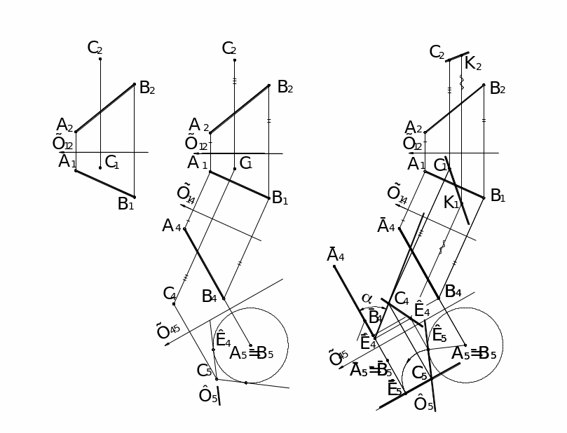 - преобразовать комплексный чертёж так, чтобы прямая стала проецирующей ;
