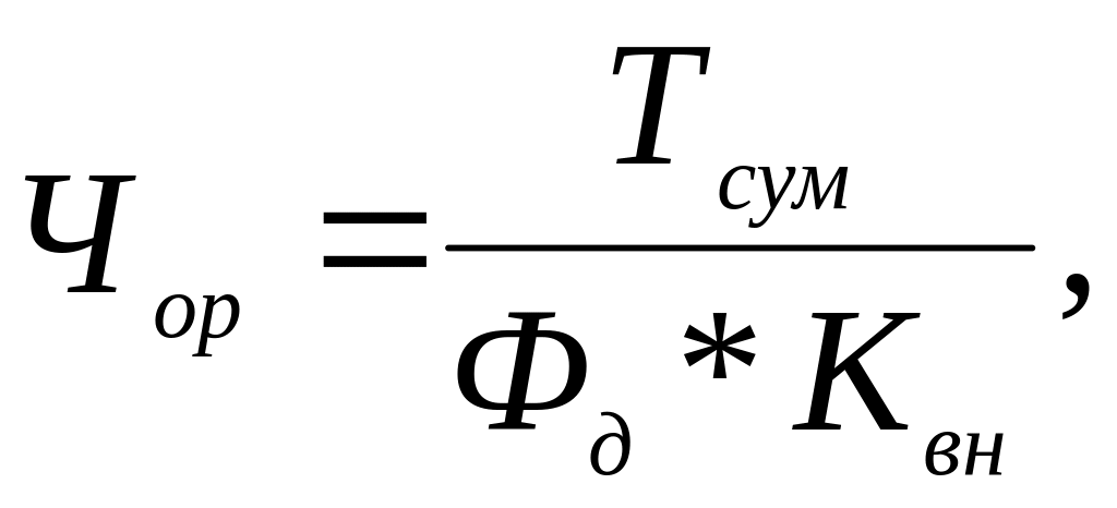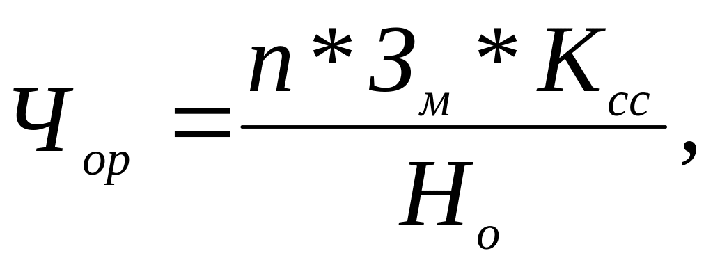 || Планова чисельність допоміжних робітників (Чдр) визначається аналогічно чисельності основних робітників, якщо для них встановлені певні норми виробітку чи обслуговування. Якщо ж такі норми не встановлені, то чисельність допоміжних робітників обчислюється: