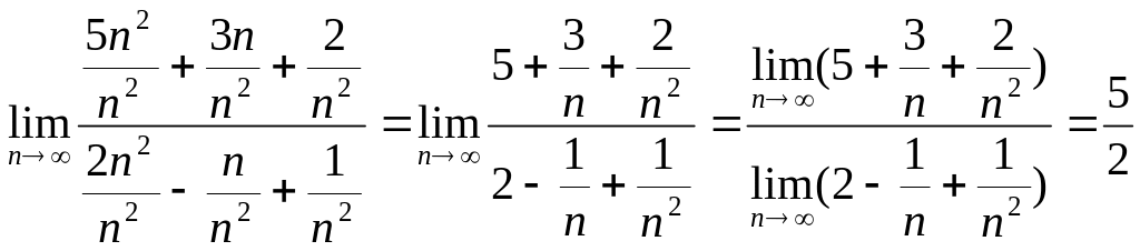 Решение примера 1: Поделим числитель и знаменатель на наивысшую степень n, в данном случае на n :