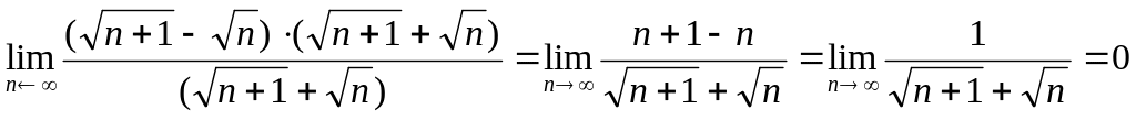 Решение: Умножим и разделим выражение, стоящее под знаком предела на выражение сопряженное ему: