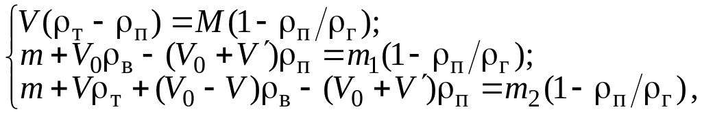 Умови рівноваги терезів (див. п.3.2.2.) при цих зважуваннях з урахуванням дії сили Архімеда будуть такими:
