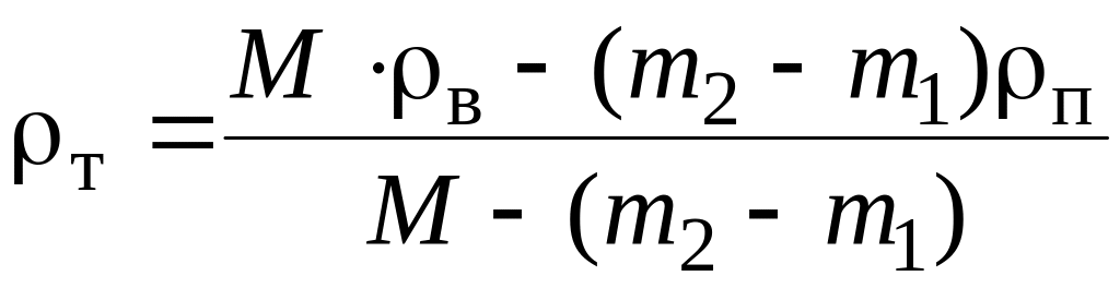 Розв’язуючи спільно рівняння (1), (2) та (3), можна отримати формулу для обчислення густини рідини при пікнометричному методі: