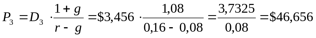 Через три года темпы роста снижаются до 8% и держатся на таком уровне бесконечно. Цена в это время, Р3, равна: