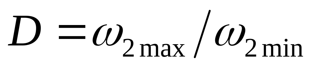 6.2.2. Діапазон регулювання варіаторів. Основною характеристикою варіатора є його діапазон регулювання D - це відношення максимальної кутової швидкості ω2max веденого вала до його мінімальної кутової швидкості ω2min при постійній швидкості ω1 обертання ведучого вала:
