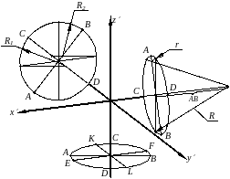 Рівні кола, що розташовані в координатних площинах або площинах їм паралельним проектується в рівні еліпси (рис. 22). Направлення осей еліпсів в прямокутних аксонометричних проекціях визначається наступним правилом: