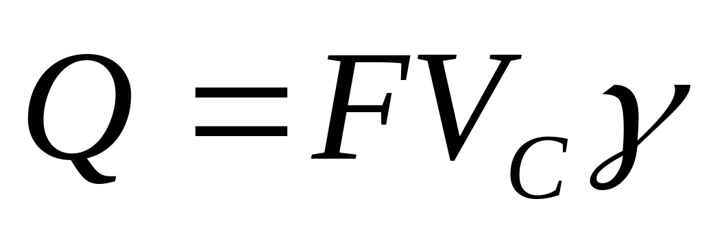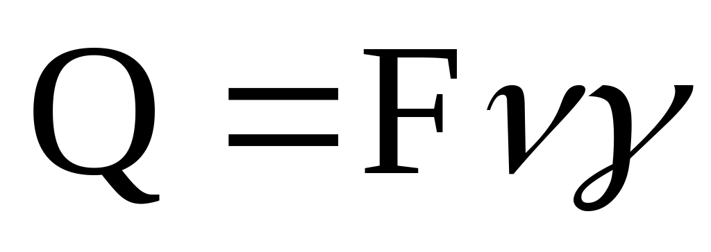 Q – продуктивність, кг/с; F – площа поперечного перерізу шару вантажу, м2; V – швидкість руху вантажу, м/с; γ – щільність (об’ємна маса) вантажу.