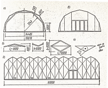 а- клеєфанерні склепіння з криволінійних ребристих панелей;