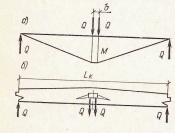Рис. ІХ.21. Епюра згинальних моментів у віддільних косяках (а) і характер руйнування косяка (б)