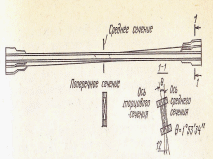 На кінцях косяка до поясів приклеюють з двох сторін ступінчасті накладки. Зусилля розтягу від згинального моменту, який діє в стиснутому перерізі між торцями накладаючи косяків, що сприймаються зварними сталевими деталями (див. рис. ІХ.14), розташованими