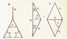 Рис. ІХ.19. Схема розташування нормальних сил у вузлі склепіння. а- в середньому вузлі ; б- в торцевому вузлі ; |