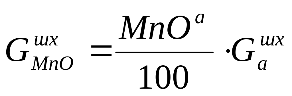 Расчет содержания марганца в чугуне. Марганец в шихту доменной печи поступает в виде оксидов марганца из агломерата. Масса оксида марганца в шихте доменной печи равна: