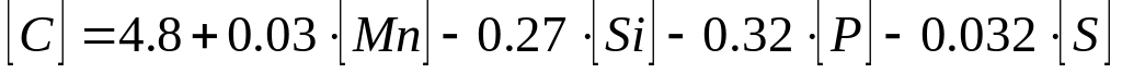[C] = 4,8 + 0,03 · 0,151 – 0,27 · 0,111 – 0,32 · 0,091 – 0,032 · 0,015 = 4,745 кг/100кг чугуна
