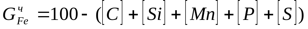 GЧFe = 100 – (4,745+0,111+0,151+0,015+0,091) = 94,887 кг/100кг чугуна