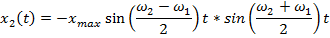 Обратите внимание, что в этом случае частота колебания маятников больше, чем частота их колебаний в несвязанном состоянии. Переходя от углов к смещению маятников от положения равновесия х, уравнение колебаний маятников имеют вид: