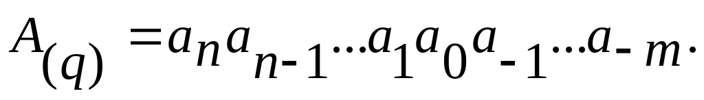 где A(q) – произвольное число, записанное в системе счисления с основанием q; ai – коэффициенты ряда (цифры системы счисления); n, m – количество целых и дробных разрядов.