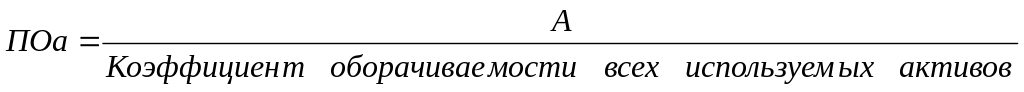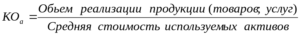 а) коефіцієнт оборотності усіх використовуваних активів (КОа). Він визначається по формулі: